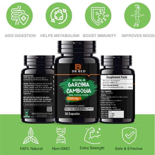 DR MED PACK OF 3 Mevital-M Garcinia Cambogia Capsules For (Loss Weight, Burns Fat, Control Appetite) 30 Capsules