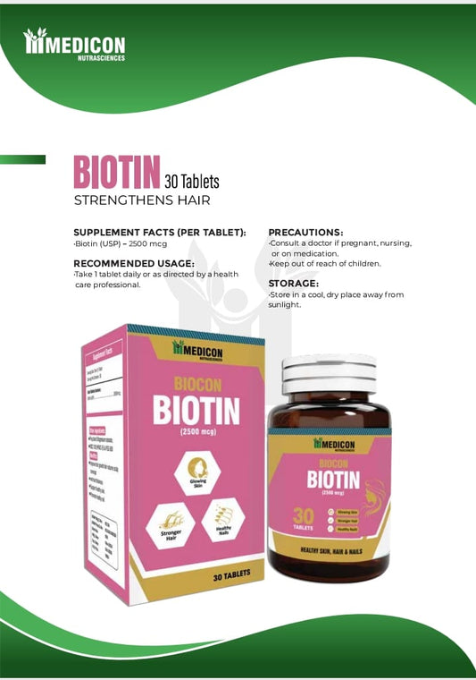 "Biotin Pack of 3 Supplement for Hair, Skin & Nails – High Potency, Supports Healthy Growth (2500mcg) 30Tablets