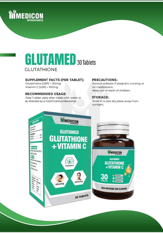 "PACK OF 3 Glutamed Glutathione 250, Vitamin C 100: Advanced Skin Brightening and Glowing Enhancement - 30 Tablets"