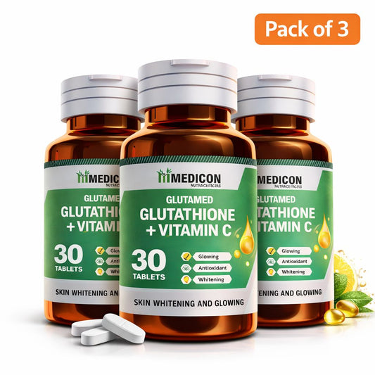 "PACK OF 3 Glutamed Glutathione 250, Vitamin C 100: Advanced Skin Brightening and Glowing Enhancement - 30 Tablets" (3 Months Complete Course)