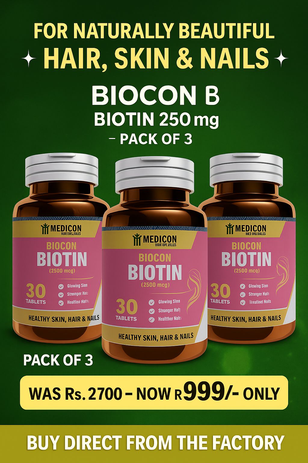 "Biotin Pack of 3 Supplement for Hair, Skin & Nails – High Potency, Supports Healthy Growth (2500mcg) 30Tablets