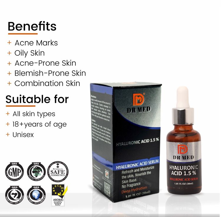 DR MED Hyaluronic Acid Serum for Face - Deeply Hydrates, Reduces Wrinkles, and Improves Skin Texture - 30 ML