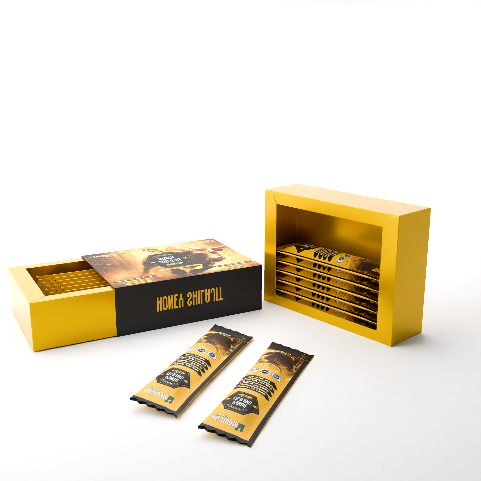 Raw Honey, Shilajit, Saffron Herbal Extracts of Cinnamon, Clove, Nutmeg, Mace, Ginseng, Ginger, Akarkara, Long Pepper, Bahman White, and Alpinia Galanga