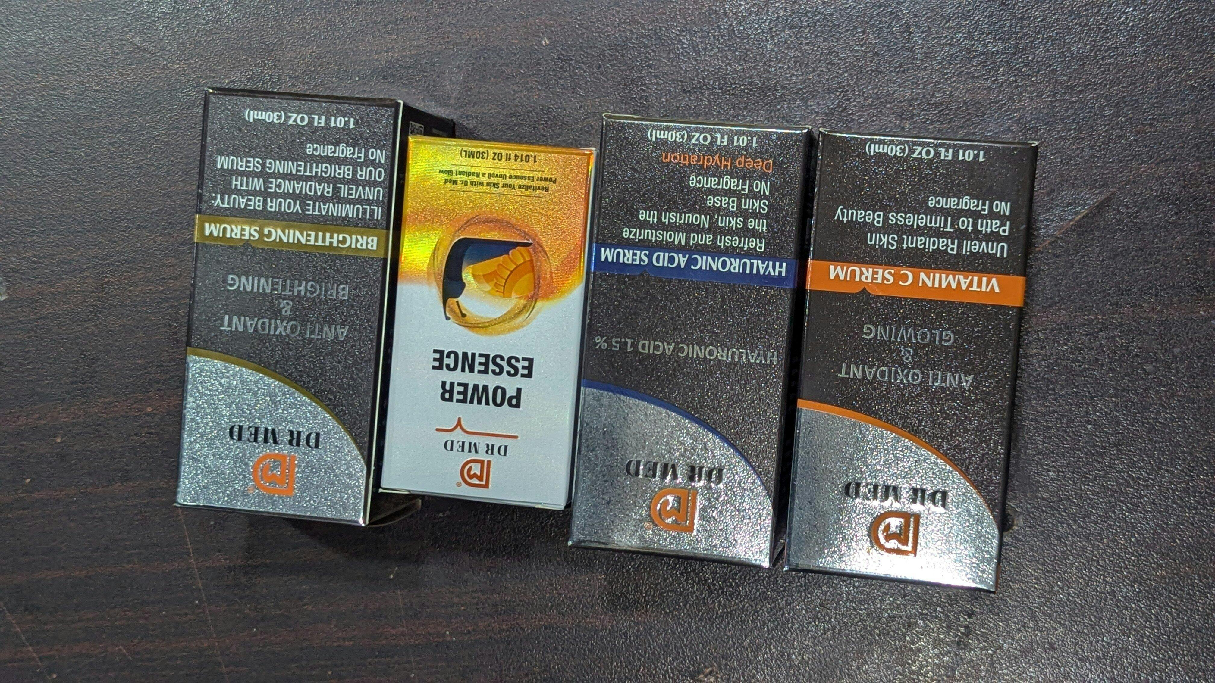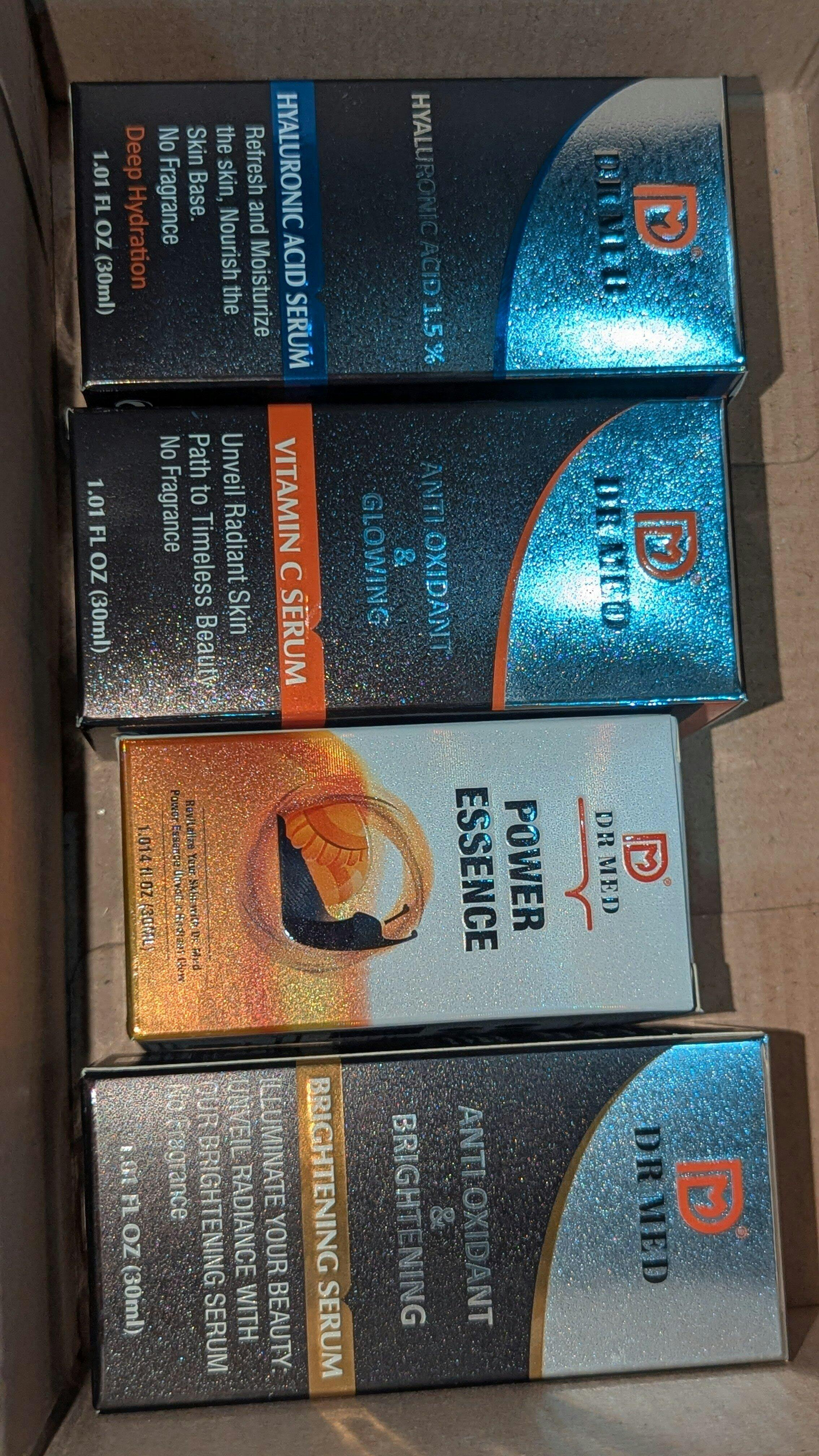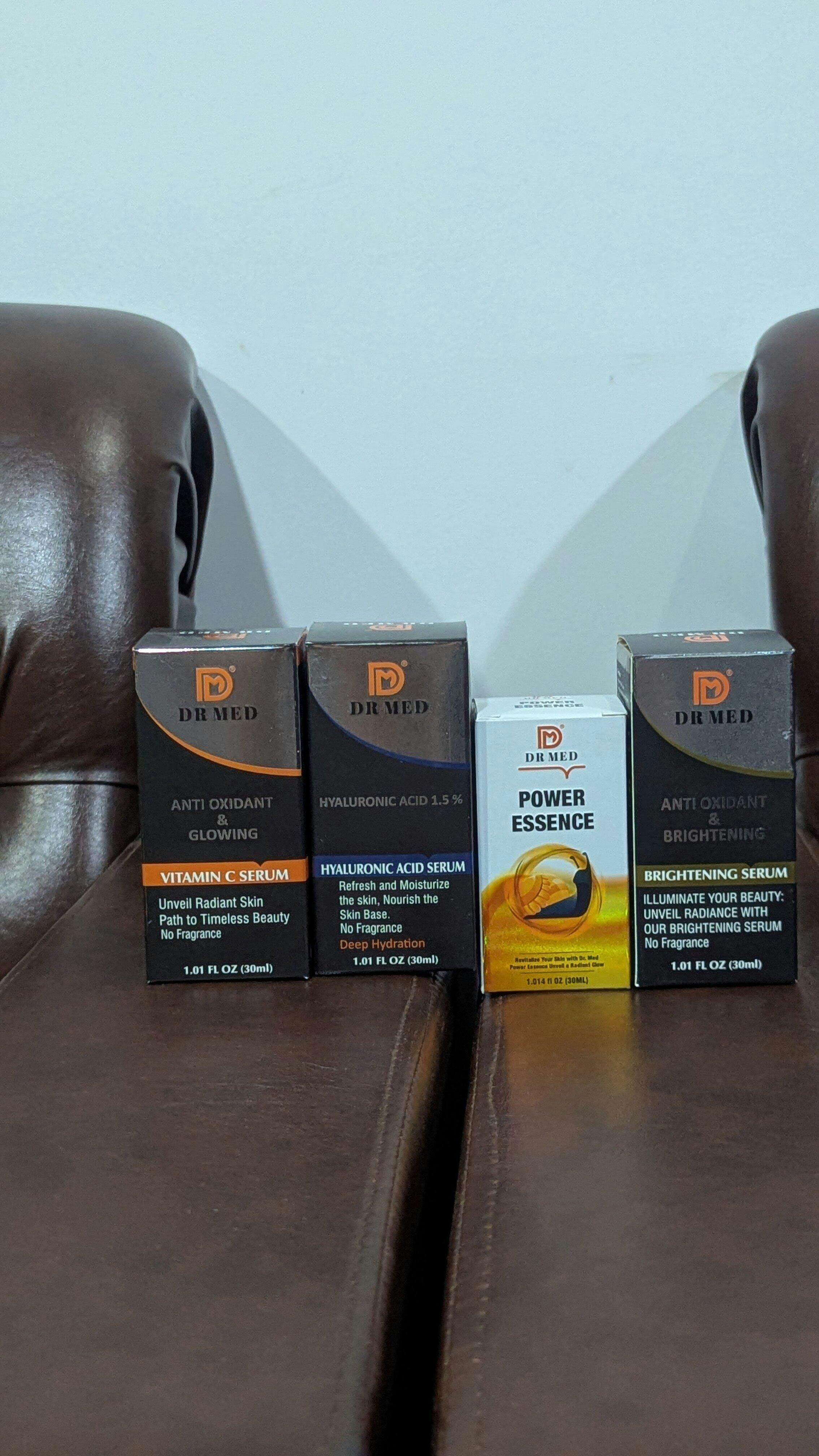 Pack of 4 Premium Serums – Vitamin C, Brightening, Hyaluronic Acid & Power Essence – Hydration, Glow & Anti-Aging
